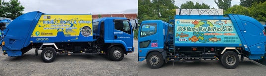 この事業は、株式会社木下カンセーから、環境に関わる地域の企業として、ラッピングを施したパッカー車でゴミ収集しながら、琵琶湖の素晴らしさを伝えていく琵琶湖博物館のイベント情報を周知できるよう協力していきたいという申し出を受け、昨年度から取り組んでいます。