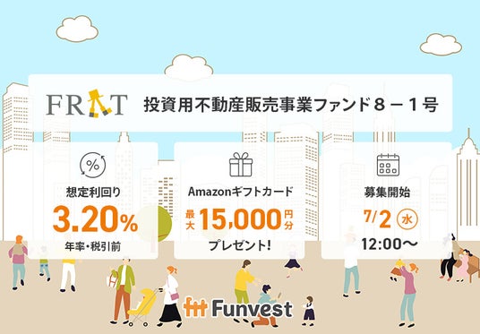 「未来をわかちあう投資」を提供する「Funvest(ファンベスト)」(以下、Funvest)は、「FRAT 投資用不動産販売事業ファンド8-1号」(以下、本ファンド)の募集を7/2より開始しますので、お知らせいたします。