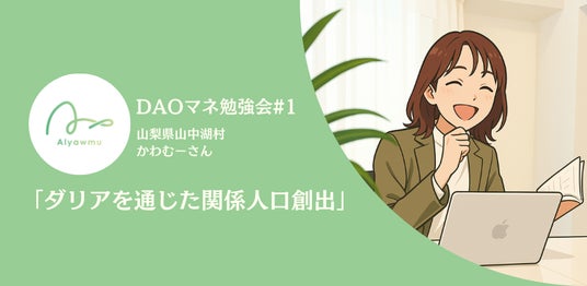 NFTによる地方創生を推進する株式会社あるやうむ(本社:札幌市、代表取締役:畠中博晶)の地域おこし協力隊DAOソリューションを活用し、山梨県山中湖村の地域おこし協力隊として着任したかわむーさん。2025年12月22日に実施した勉強会では、かわむーさんを講師に迎え、「ダリアを通じた関係人口創出」をテーマに、現場でのリアルな取り組みや工夫、考え方などについて共有しました。