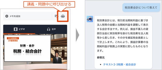 この「AI学習ナビ」機能は、「学習の進め方に迷う」「疑問点が出てきた」「モチベーションが続かない」といった学習中のあらゆる悩みに、専属のAI資格学習コーチである「AIマスター先生」が寄り添い、受講生の学習をトータルで支援するものです。このように、学習の1シーンにおける個別指導にとどまらず、受講生の学習に常に伴走・サポートする個別指導機能をご提供することで、受講生の学習継続を強力に後押しします。