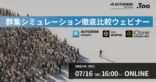 クリエイティブ市場の総合商社・株式会社Too(本社/東京都港区虎ノ門3-4-7、社長/石井剛太、以下Too)は、「群集シミュレーション徹底比較ウェビナー」を2025年7月16日(水)に開催します。