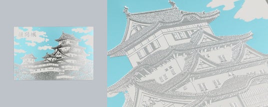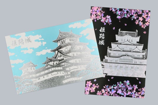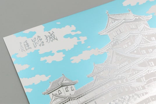 姫路城の魅力である白壁をシルバー箔で豪華に表現したポストカード