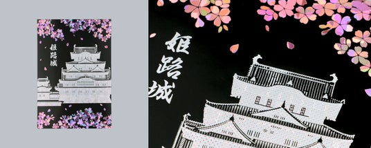 姫路城の魅力引き立つ箔の表現光沢のある紙を使用することで、箔押しの煌めきがより美しく映え、豪華で上品な仕上がりです。