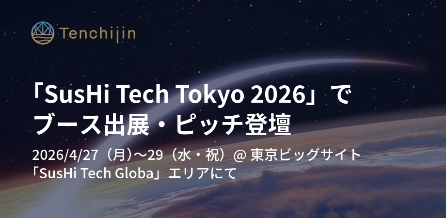 JAXAベンチャー 株式会社天地人(東京都中央区 代表取締役 櫻庭康人)は、2026年4月27日(月)~29日(水・祝)に東京ビッグサイトで開催される「SusHi Tech Tokyo 2026」内「SusHi Tech Globalエリア」にてブース出展いたします。また、4月28日(火)には、執行役員・事業開発統括の西山 陽平が同エリアのステージにてピッチ登壇します。