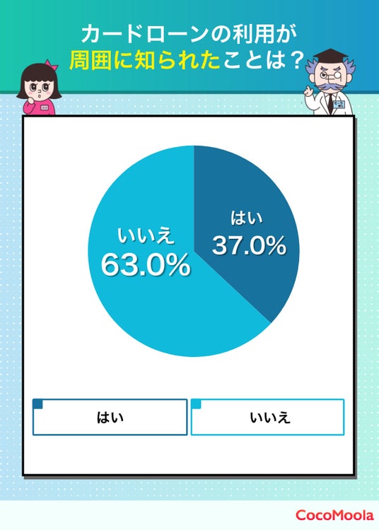 - 「カードローンの利用が周囲に知られたことはない」と答えた方は約63%。
