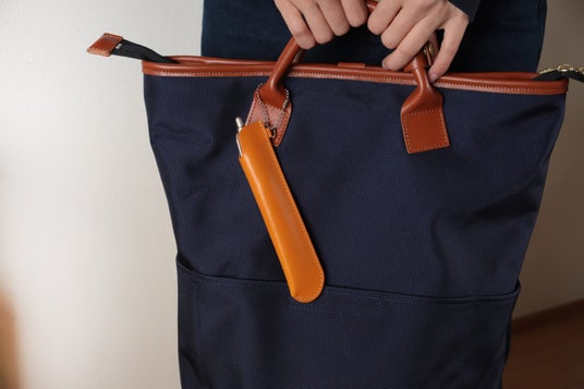 首掛け・バッグ装着に対応する金具付きで、ペンシースを“身につけて持ち歩く”ことができます。