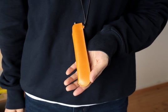別売りの革ひもを合わせれば首掛けスタイルにも対応します。