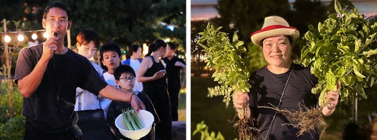 本年4月末に畑を立ち上げてから約4か月が経過。日々の手入れの成果もあり、夏野菜を中心に、サイズは小ぶりながらも実のしっかり詰まったすいかや、畑からあふれるほどに育ったバジルなど、多彩な収穫物が実りました。当日は参加者の皆さま自ら収穫を体験いただき、その後はキッチンカーにてガパオライスやカオマンガイといった料理に仕上げられ、採れたての野菜やハーブの香りとともに味わっていただきました。