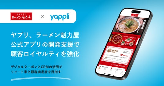 アプリプラットフォーム「Yappli(ヤプリ)」を提供する株式会社ヤプリ(本社:東京都港区、代表取締役:庵原保文、以下「ヤプリ」)は、京都北白川ラーメン魁力屋を運営する株式会社魁力屋(本社:京都市中京区、代表取締役:藤田宗、以下「魁力屋」)が運営する「ラーメン魁力屋公式アプリ」を開発支援、Yappli CRMによるアプリ起点の顧客管理を実現したことをお知らせします。