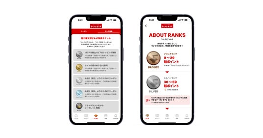 紙クーポンの紛失や不便さを解消し、スマートフォンの画面提示だけで利用できる手軽さを実現。ランクに応じた特典やアプリ限定クーポンも配信しています。