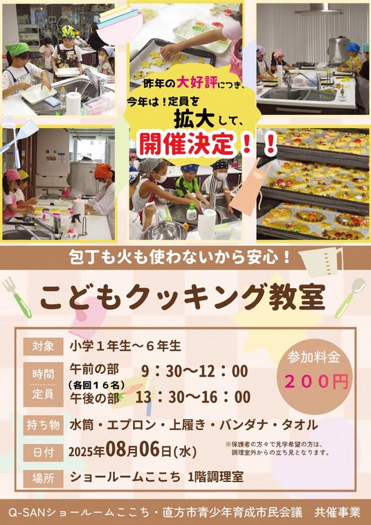 直方市では、小学生を対象にした「こどもクッキング教室」を開催いたします。包丁や火を使わない安全な調理体験を通じて、食の楽しさや作る喜びを感じてもらうことを目的とした教室です。今回は、子どもたちに人気の「クッキー作り」にチャレンジします!