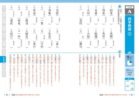 (『でる順×分野別 漢検問題集 3級 六訂版』 四字熟語 紙面イメージ)