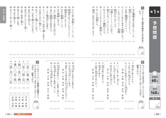 (『でる順×分野別 漢検問題集 3級 六訂版』 予想問題 紙面イメージ)