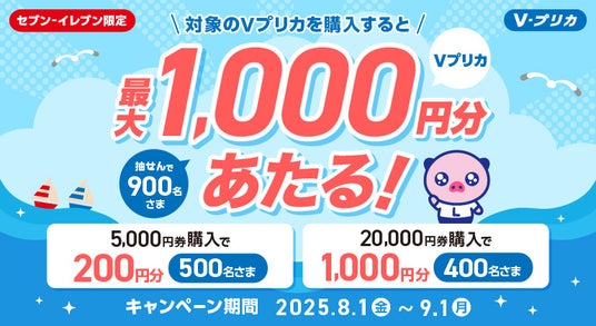 抽せんで合計900名さまに最大1,000円分のVプリカがあたる!