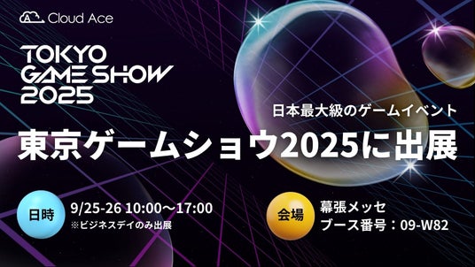 クラウドエース株式会社(本社:東京都千代田区、代表取締役社長:青木 誠/以下、クラウドエース)は、2025 年 9 月 25 日(木)から 9 月 26 日(金)に一般社団法人コンピュータエンターテインメント協会(略称:CESA、会長:辻本 春弘)が主催する東京ゲームショウ2025 に出展することをお知らせいたします。