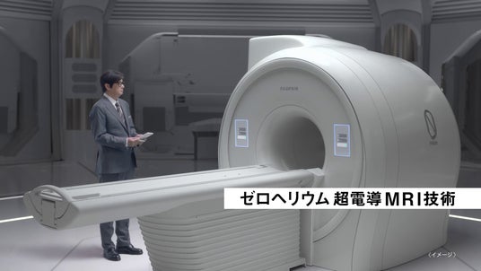 新TVCMでは、富士フイルムが開発した液体ヘリウムをまったく使わないゼロヘリウム超電導MRI技術(※1)を紹介します。本技術は、液体ヘリウムを一切使わずに磁石をマイナス269℃の超低温状態に保つことができる冷却方式により、MRIシステムを稼働させることができ、一般的な超電導型MRIシステムの課題を解決します(※2)。