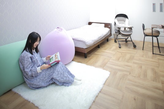 共有スペースにあるYogiboは個室への持ち込みも可能です。休んだり仕事をしたり、赤ちゃんと過ごしたり……個室での過ごし方はさまざま。周囲を気にせず、自分のペースでしっかり休める環境と好評でした。