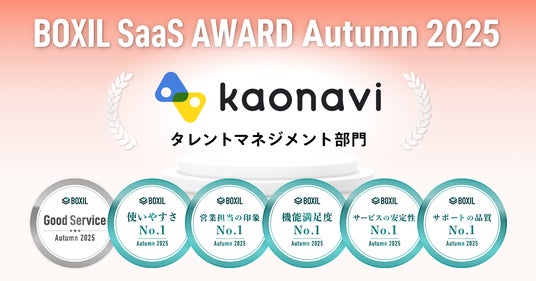 株式会社カオナビ(本社:東京都渋谷区、代表取締役社長CEO:佐藤 寛之、以下:当社)が提供するタレントマネジメントシステム「カオナビ」が、スマートキャンプ株式会社が主催する、今最も評価されているSaaSを表彰する「BOXIL SaaS AWARD Autumn 2025」のタレントマネジメント部門において、合計6つの賞を受賞しました。