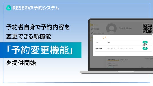 株式会社コントロールテクノロジーは、クラウド型予約管理システム「RESERVA(レゼルバ)」において、新たに予約人数や日程、オプション内容を、管理者を介さずに予約者自身で変更できる新機能「予約変更機能」をリリースしました。本機能により、管理者が変更依頼に都度対応する必要がなくなり、業務効率化につながります。予約者も急な予定変更や体調不良の際にキャンセルせず対応できるため、顧客満足度を維持しながら機会損失を防止できます。