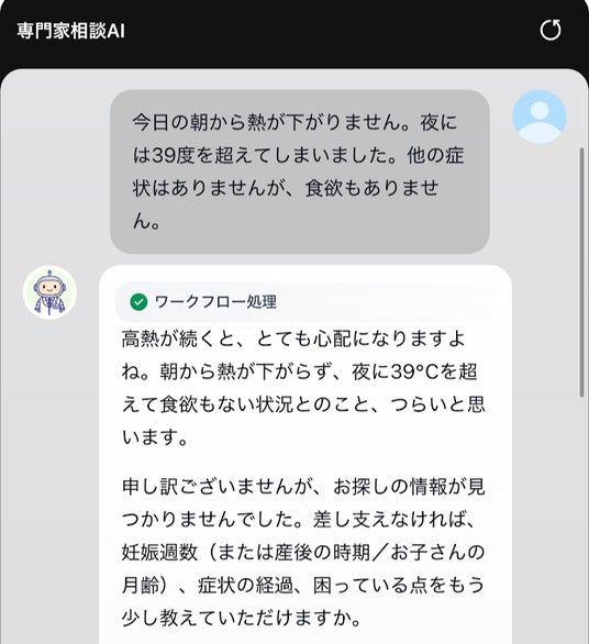 『専門家相談AI』は、そうした不安や疑問に寄り添いながら、専門家監修の情報をもとに安心して参考にできる回答を提供することを目指して開発された機能です。妊娠中の体調の変化や赤ちゃんのお世話、日々の小さな疑問まで、いつでも気軽に相談できる存在としてご活用いただけます。