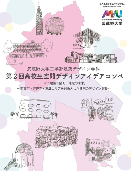 武蔵野大学工学部建築デザイン学科(東京都西東京市)は高校生の創作活動の推進および武蔵野大学の位置する吉祥寺・三鷹・西東京エリアの魅力を高め、地域を豊かにすることを目的に「第2回 高校生空間デザインアイディアコンペ~建築で描く、地域の未来。~」を開催します。作品は2025年8月18日(月)~8月29日(金)の期間で募集します。