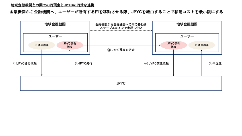 - 地域金融機関との間での円預金とJPYCの円滑な連携方法