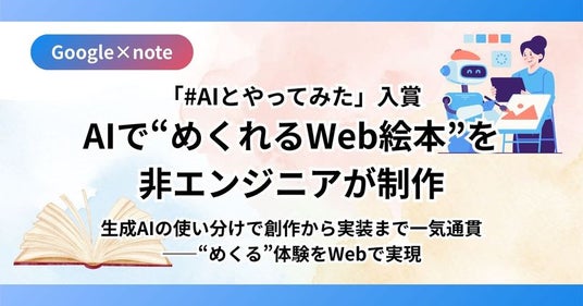 Google Geminiとnoteのコラボ投稿コンテスト「#AIとやってみた」(募集期間:2025年6月9日~7月9日、9月8日審査結果発表)において、当社が投稿している「アローグループDX推進部」の記事「3歳の娘に仕事を聞かれ…知識ゼロママの『Geminiとやってみた!』めくれる絵本アプリ開発記」が入賞いたしました。