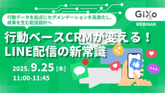 株式会社ギックス(本社:東京都港区、代表取締役CEO:網野知博、以下:当社)は、無料ウェビナー「行動ベースCRMが変える!LINE配信の新常識~行動データを起点にセグメンテーションを高度化し、成果を生む配信設計へ~」を2025年9月25日(木)に開催いたします。