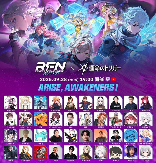 株式会社REJECT(本社:東京都港区、代表取締役:甲山翔也)が運営するプロeスポーツチーム「REJECT」は、2025年7月28日(日)に新作バトルロイヤルゲーム『運命のトリガー』(今月下旬リリース予定)を採用したオンラインイベント 「REJECT FIGHT NIGHT EXTRA|運命のトリガー」 を開催することをお知らせいたします。