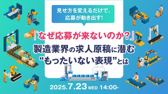 「働く」に関する社会課題をビジネスで解決するキャムコムグループの株式会社天職市場(本社:東京都新宿区、代表取締役:春名敬太 、以下:天職市場)は、2025年7月23日(水) 14:00よりオンラインセミナー『~見せ方を変えるだけで、応募が動き出す!~「なぜ応募が来ないのか?」製造業界の求人原稿に潜む“もったいない表現”とは』を開催いたします。