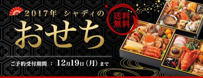 株式会社ニッセンホールディングス(本社:京都市南区、代表取締役社長:脇田珠樹)の子会社であるギフト販売のシャディ株式会社(本社:東京都港区、代表取締役社長:井原章善)では 「2017年 シャディのおせち」の予約を開始いたしました。