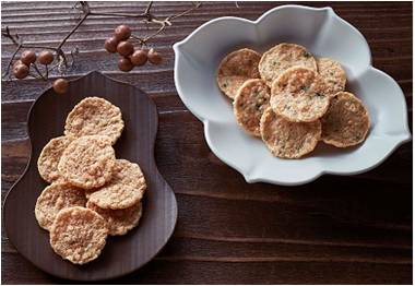 天然海老がもつ旨みをそのまま揚げ煎にした海老味と北海道産帆立貝柱の甘みとコク、海老の旨みにのりを合わせた帆立味です。