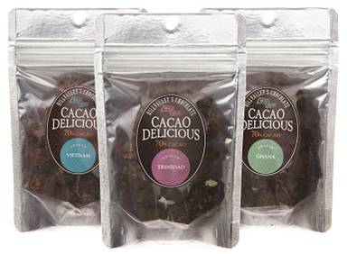 3つの産地(トリニダード・トバゴ、ベトナム、ガーナ)のカカオ豆を使用。大人なポップコーンです。