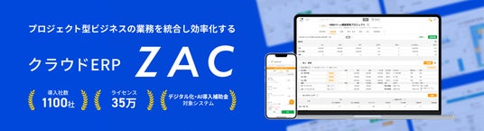 クラウドERP「ZAC」は損益管理、プロジェクト管理、管理会計、内部統制、決算早期化を実現する統合型の基幹業務システムです。業務効率化と的確な経営判断を支援し、企業の継続的な成長を担う経営基盤として、IT業、システム業、広告業・クリエイティブ業、士業、コンサルティング業をはじめとした累計1,100社を超える企業様に導入いただいております。