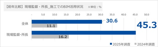BuildApp(ビルドアップ)で建設DXに取り組む野原グループのBuildApp総合研究所(所在:東京都新宿区、代表:山梶真司)は、2025年3月に実施した「建設産業従事者1,257人への独自調査」から、建設現場の「施工管理(工程、安全、品質、原価などの工事に関わる様々な業務の管理)」に従事する現場監督・所長322名に対象者を絞った「BIM活用、建設DXの現状と技術承継の実態調査」の結果を発表します。