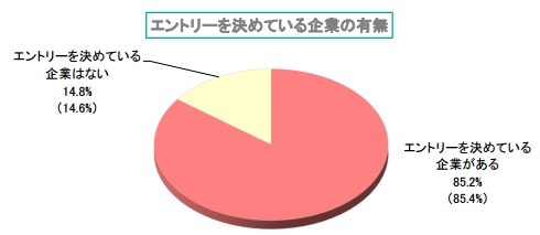3月から始まる2018卒の企業の新卒採用広報解禁まで1カ月を切りました。学生に就活の状況を聞いた弊社調査(1月実施)で、エントリーをしようと決めている企業があるかを尋ねたところ、「エントリーを決めている企業がある」と回答したのは全体の 85.2%に上り、前年同様、企業研究がかなり進んでいます。