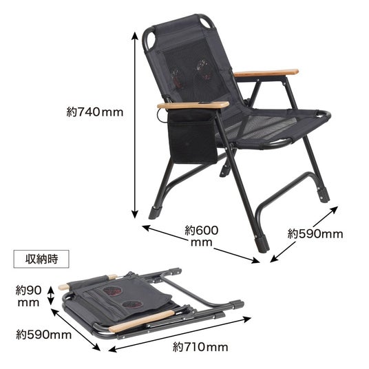 本製品は、背中に風を送って蒸れを軽減できる、ツインファン内蔵の折りたたみ式ローチェアです。