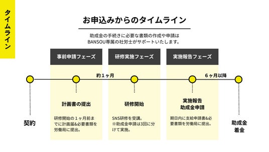 助成金の手続きに必要な書類の作成や申請は、BANSOU専属の社労士がサポートいたします。