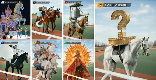 さらに、今回の動画では、事前に募集したファンの皆様からのアイデアを実現した、7頭目の競走馬がレースに参加し、本編に登場します。生成AIだからこそできるファン参加型CMとしてぜひお楽しみください。