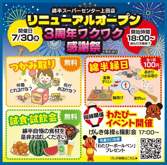 株式会社綿半ホームエイド(長野県長野市 代表取締役社長:永岡幸春)は、綿半スーパーセンター上田店において、お客さまの利便性向上のため、園芸・DIYコーナーを大幅拡充するリニューアルを実施いたしました。これに伴い、2025年7月30日(水)よりリニューアルOPEN記念セールを開催いたします。