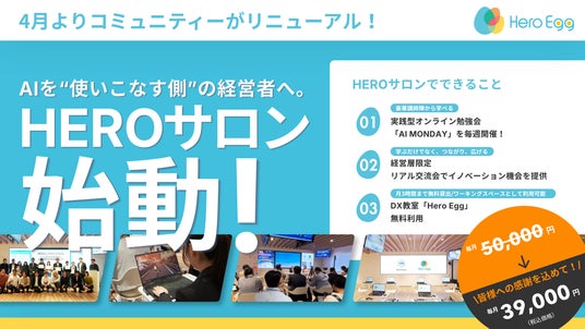 株式会社Meta Heroes(本社所在地:大阪府大阪市、代表取締役:松石和俊、以下「当社」)は、これまで提供してきた企業向け支援制度をリニューアルし、経営層や役員の方々が共に学び、次世代を応援するコミュニティ「HEROサロン」として新しくスタートすることをお知らせいたします。
