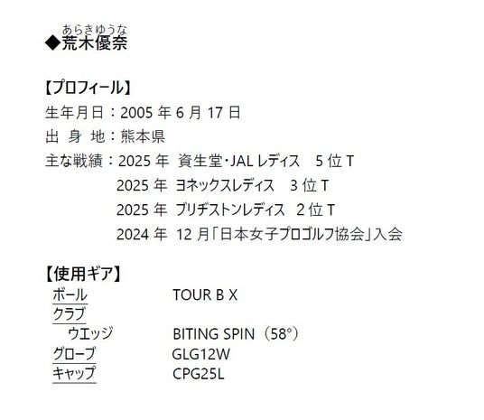 9月5日~9月7日にゴルフ5カントリー オークビレッヂ(千葉県)で行われた国内女子ツアー「ゴルフ5レディスプロゴルフトーナメント」において、首位タイからスタートしたボール・用品契約の荒木優奈が、最終日5バーディ、1ボギーの68でプレーし、通算12アンダーとして国内女子ツアー初優勝をルーキーイヤーで果たしました。なお、9位タイには当社がサポートするアマチュアの中澤瑠来が入り、ベストアマチュア賞を獲得しています。