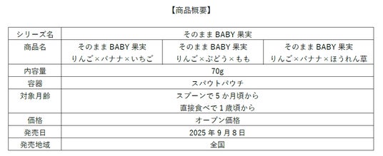 アサヒグループ食品株式会社(本社 東京、社長 川原浩)は、和光堂ブランドのベビーフード「そのままBABY果実」3アイテムを9月8日から発売します。