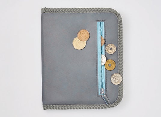 進化版では、性別や年代問わず使いやすい“グレー×水色”のバイカラーにアップデート。外側は光沢のあるグレー、内側は取り出したいものをパッと見つけやすい、明るい水色の生地を使用しています。また、手前のポケットは中身が透けて分かりやすいメッシュ素材にアップデートしました。