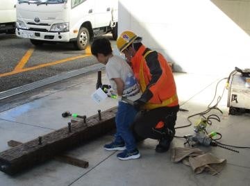 姫路市自然観察の森の職員のアドバイスのもと工作します。