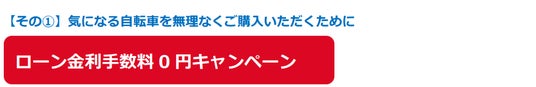 気になる自転車を無理なくご購入いただくために、車体価格6万円以上(税込)の自転車のローン利用購入時の分割金利手数料を当社が負担。