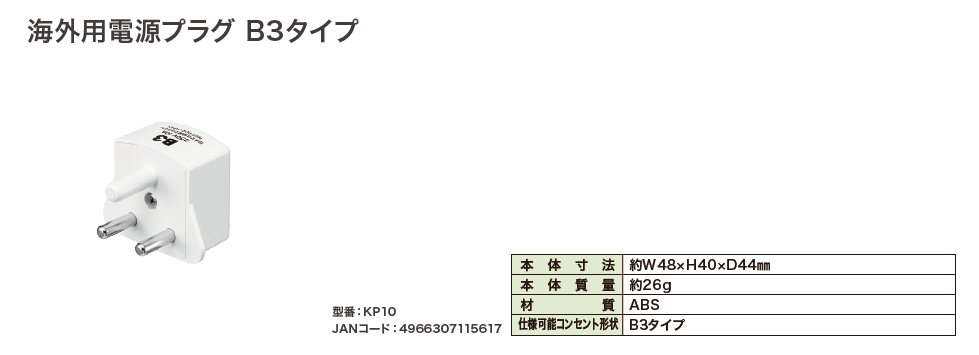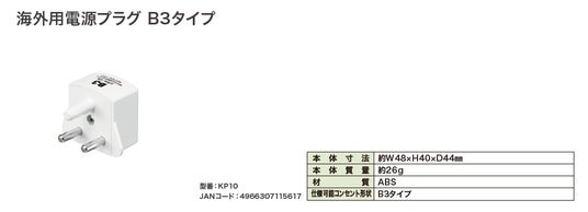 ●日本国内向けの電源プラグ形状を、海外コンセント形状に変換するアダプタです。