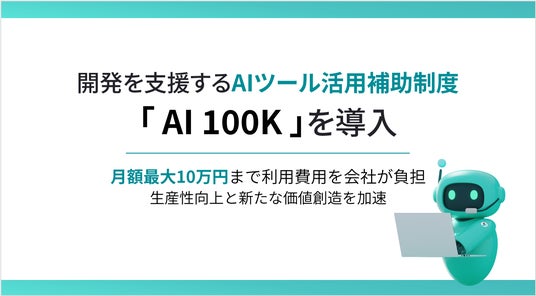 本制度では、業務に必要なAIツールの利用費用を月額最大10万円まで会社が負担することで開発生産性を向上させ、より高品質なサービスの提供を推進します。