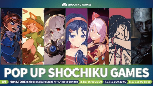 松竹株式会社ゲーム事業室(以降、松竹ゲームズ)は、本日8月15日(金)16時より渋谷404 Storeにて初のポップアップストア『POP UP SHOCHIKU GAMES』を開催いたします。