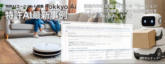 リーガルテック株式会社(本社:東京都港区、代表取締役:平井智之)は、家庭内作業支援ロボットのモーションプランニング技術に関する特許出願において、自社開発の特許支援AIプラットフォーム「MyTokkyo.Ai」が活用されたことを発表する。本事例では、家具配置や人の移動を考慮した経路最適化アルゴリズムに関し、AIが特許化可能な構成要素を自動抽出し、出願ドラフトを生成した。